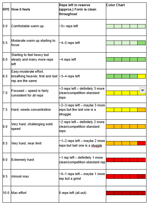 Rate of Perceived Exertion (RPE) chart by Coach Maya from Team Power Legion